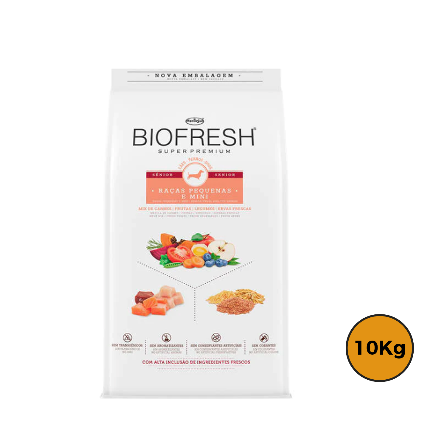 Biofresh Super Premium para perros fue desarrollado con ingredientes realmente frescos, sin la adición de transgénicos, saborizantes, colorantes y conservantes artificiales. La línea proporciona una nutrición completa, equilibrada y saludable para las mascotas. Completo y único en el mercado, Biofresh tiene una alta inclusión de carnes, frutas, verduras y granos integrales reales, como arroz, avena y semillas de lino, así como hierbas frescas, antioxidantes y conservantes naturales que ofrecen un sabor especial. Alimentos seguros, naturalmente sabrosos, nutritivos y desarrollados con formulaciones especiales para cachorros, adultos, con versiones para mascotas, para aquellos con peso por encima del ideal, seniors, y también divididos entre razas pequeñas y mini, medianas, y grandes y gigantes.