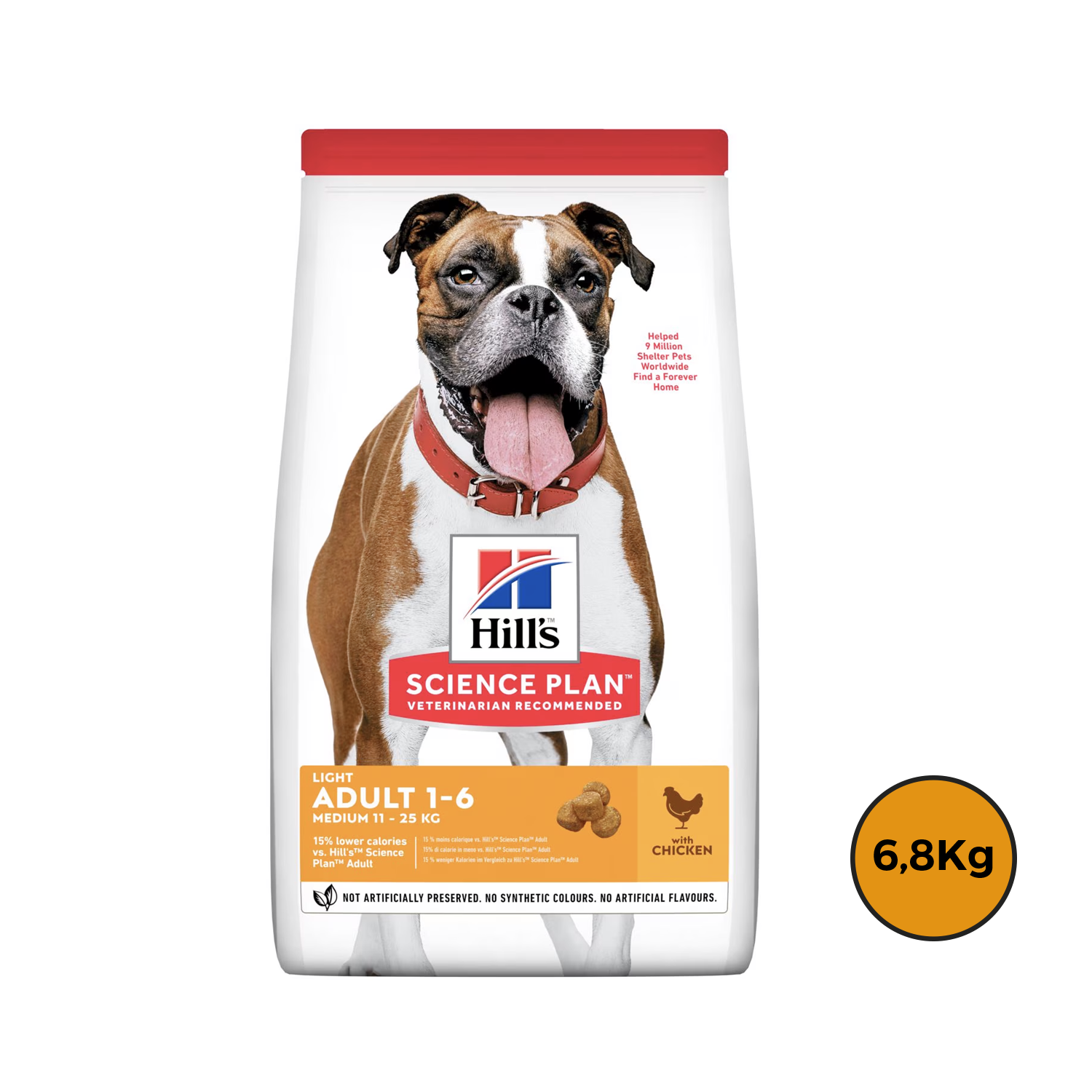 El alimento seco para perros Hill’s® Science Diet® Light Adult es nutrición precisa para perros adultos menos activos que requieren un alimento bajo en calorías para mantener un peso y estilo de vida sanos. Delicioso sabor pollo para aquellos que prefieren la variedad. Bajo en calorías y L-carnitina que promueven un peso corporal ideal, favorecen una movilidad sana y mantienen la función cardiaca Proteína de alta calidad y fibras naturales que ayudan a satisfacer el apetito entre comidas Omega-6 y vitamina E para piel y pelaje hermosos