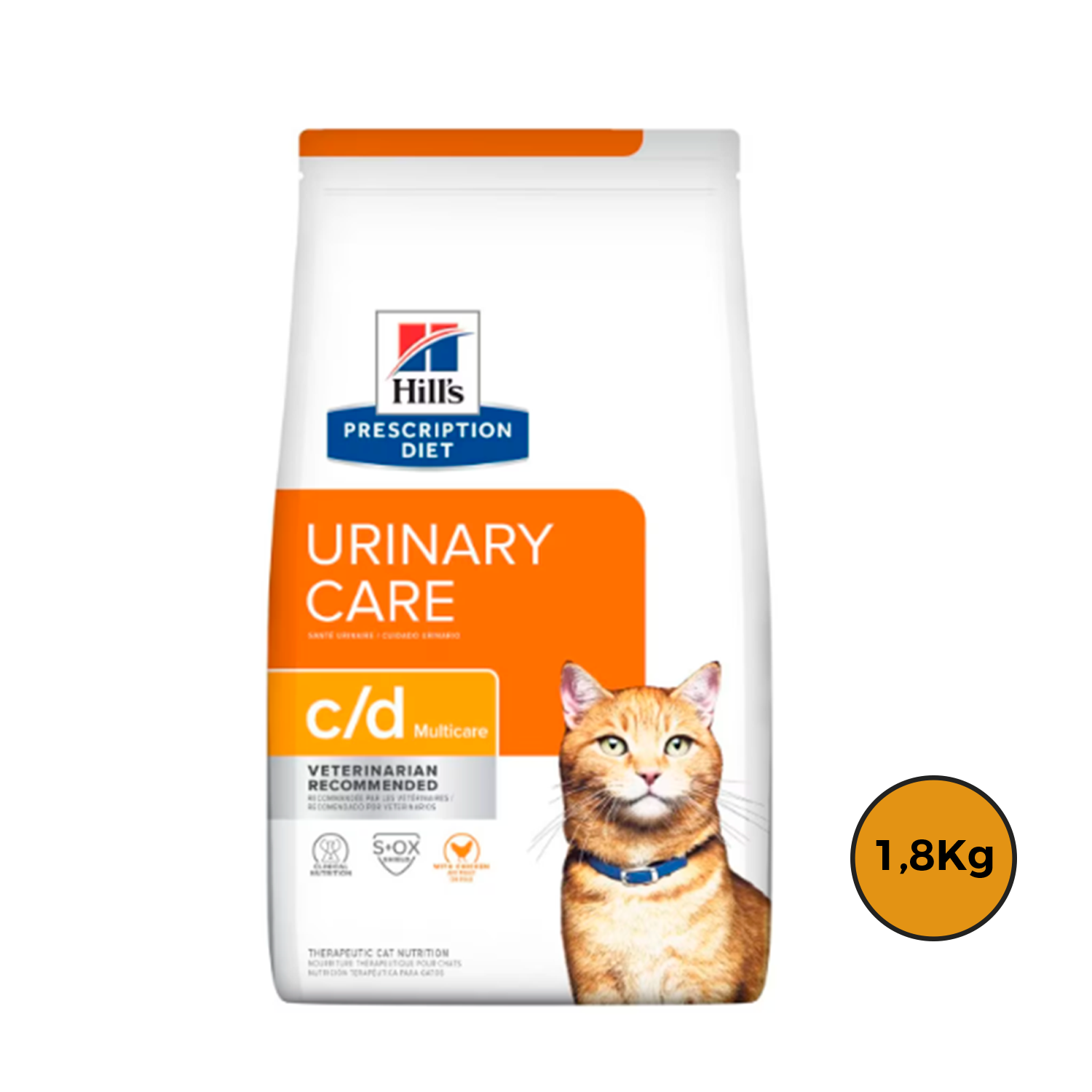 Hill’s Prescription Diet c/d Multicare alimento para gatos con pollo es un alimento dietético completo para la reducción de la reaparición de cálculos de estruvita (causa de enfermedad de las vías urinarias inferiores de los felinos, FLUTD), la disolución de cálculos de estruvita y la reducción de la formación de cálculos de oxalato en gatos adultos. Este alimento tiene propiedades de subsaturación de la orina para la estruvita, propiedades de alcalinización de la orina y bajo contenido de magnesio, calcio y vitamina D.