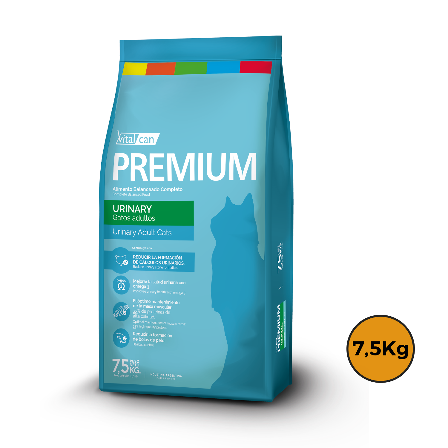 Harina de vísceras de pollo, harina de carne y hueso bovino, gluten de maíz, arroz, concentrado proteico de soja, trigo, arvejas, aceite de pollo y/o grasa vacuna, maíz, pulpa de remolacha (fuente de fructooligosacáridos), hidrolizado de hígado porcino, levadura de cerveza, aceite de pescado, extracto de Yucca schidigera, lisina, metionina, colina, taurina, sal, zeolita, celulosa en polvo, bisulfato de sodio, cloruro de potasio, sorbato de potasio, extracto de romero, lecitina, tocoferoles, BHT, BHA, ácido cítrico. Vitaminas: A, C, D3, E, K3, B1, B2, B6, B12, ácido fólico, ácido nicotínico, ácido pantoténico, biotina. Minerales: hierro, cobre, zinc, selenio, manganeso, yodo, calcio.