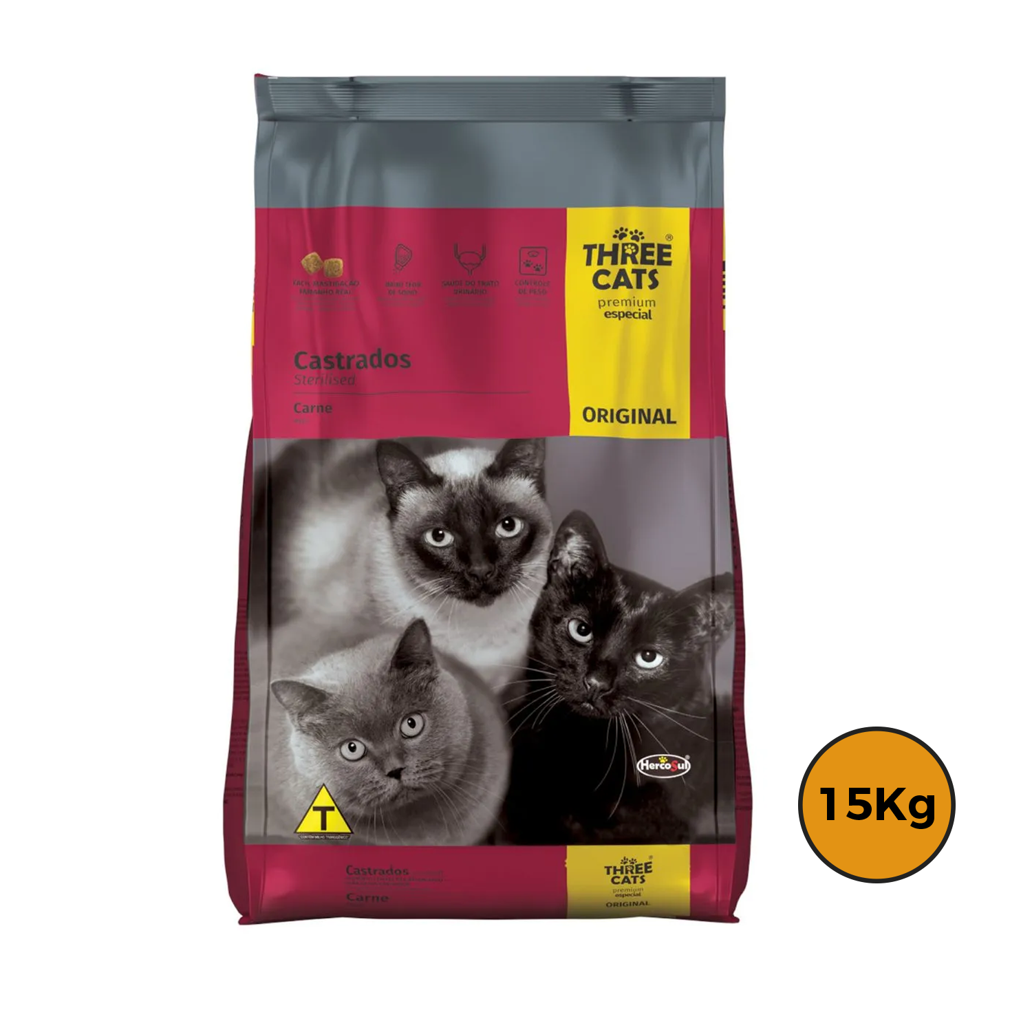 ORIGINAL GATOS CASTRADOS – CARNE Three Cats Premium Especial Original Castrados es un alimento moderno y seguro, libre de colorantes y aromas artificiales. Especialmente desarrollado para gatos castrados, tiene menor valor calórico y minerales controlados para ayudarlos a mantener la buena forma y la salud del tracto urinario. Three Cats Original Castrado suministran una nutrición completa y equilibrada, de la manera que su gato necesita para tener una vida alegre y saludable